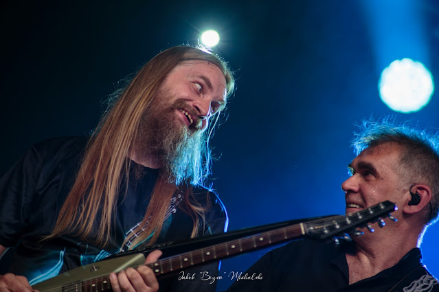 A muzyka? Niektóre edycje są bardziej zbliżone do mojego gustu, inne mniej. W tym roku raczej nie czekałem na żaden koncert z wielką ekscytacją, choć przyznaję, że przyjemnie było posłuchać nieco innych niż oryginały wersji klasyków King Crimson w wykonaniu David Cross Band, ładnie bujał Soen w nieco łagodniejszym wydaniu, poszerzony o sekcję smyczkową i uroczą wokalistkę wspomagającą Joela, a nawet początkowo nie do końca podchodzące mi Long Distance Calling rozkręciło się tak, że pod koniec ich występu wióry leciały ze sceny. Skład uzupełniły dwie polskie formacje, które bardzo często pojawiają się na antenie Rockserwis FM. Młodzi (no, w porównaniu... ;) ) czyli Here on Earth oraz prog-weterani, czyli Collage, którzy w tym roku na fali popularności pierwszej od wielu lat płyty obskoczyli wszystkie możliwe festiwale okołoprogresywne w tym kraju. Muzycznie jednak z nostalgią wspominam edycję z 2016 roku, gdy przed headlinerem spoza mojej bajki (Lacrimosa) zagrali Agusa, Dungen i Anekdoten (genialny skład), czy z roku 2018, gdy wystąpili m.in. Bjorn Riis i Soup. Wymieniłem samych skandynawskich wykonawców. Przypadek? Sami sobie odpowiedzcie ;)