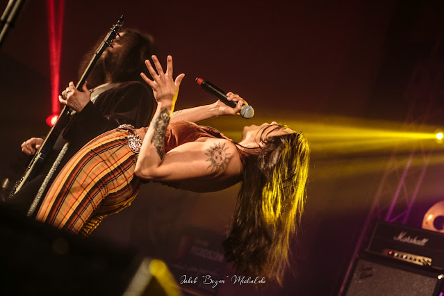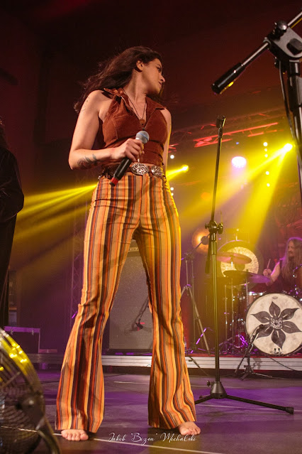 To nie będzie szczegółowy opis koncertu. Fani szwedzkiej ekipy wiedzą, czego spodziewać się po ich występach. Zespół zaprezentował półtorej godziny kapitalnego retro rocka i sięgnął po nagrania w zasadzie z całego okresu swojej działalności. Były zarówno kompozycje z dwóch ostatnich płyt, nagranych w obecnym składzie, jak i numery z początków działalności formacji, gdy z obecnego kwartetu w Siena Root grała tylko sekcja rytmiczna Sam Riffer / Love Forsberg. Nieformalnie moglibyśmy podzielić ten występ na dwie części. Podczas pierwszej Zubaida Solid zajmowała miejsce na środku sceny, a zespół grał jedynie na gitarę, bas i perkusję. W drugiej części przeniosła się na lewą (a z perspektywy publiczności prawą) stronę i zasiadła za instrumentami klawiszowymi. Jeśli miałbym wyróżnić jeden moment, byłoby to wykonanie We Are Them - pierwszej części strony A mojej ulubionej płyty Siena Root, Different Realities. Większość słuchaczy chyba byłaby podobnego zdania, bo to właśnie ta kompozycja wywołała najbardziej intensywną reakcję około stu osób zgromadzonych na sali Domu Kultury w Przeciszowie.